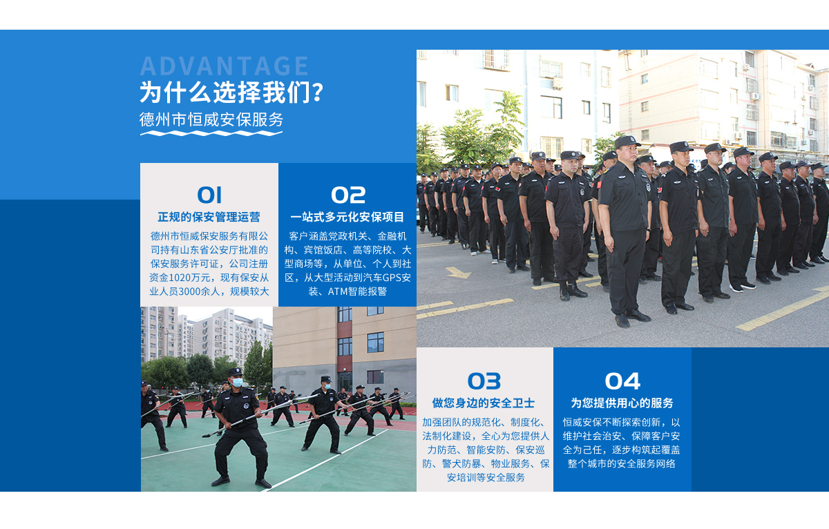 德州市恒威安保服務有限公司,注冊資金1020萬元。是經山東省公安廳批準、德州市工商管理局登記注冊、具有獨立法人資格的專業保安服務公司,下設10個職能科室和業務部...